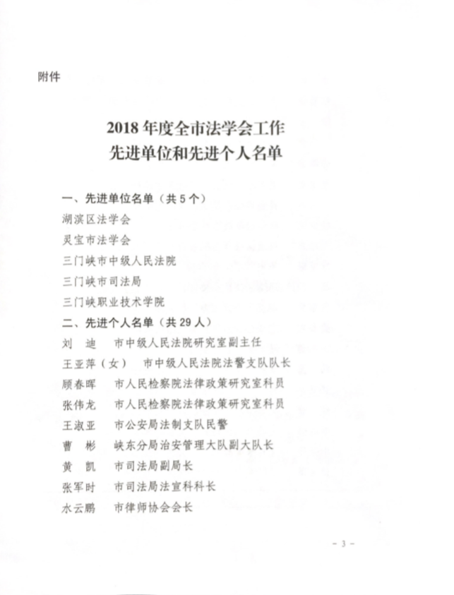 近日,三门峡市法学会工作领导小组印发《关于表彰2018年度先进单位和先进个人的通报》([2019]5号)文件,对2018年度全市法学会工作先进单位和先进个人予以表彰,我校喜获“2018年度全市法学会工作先进单位”。